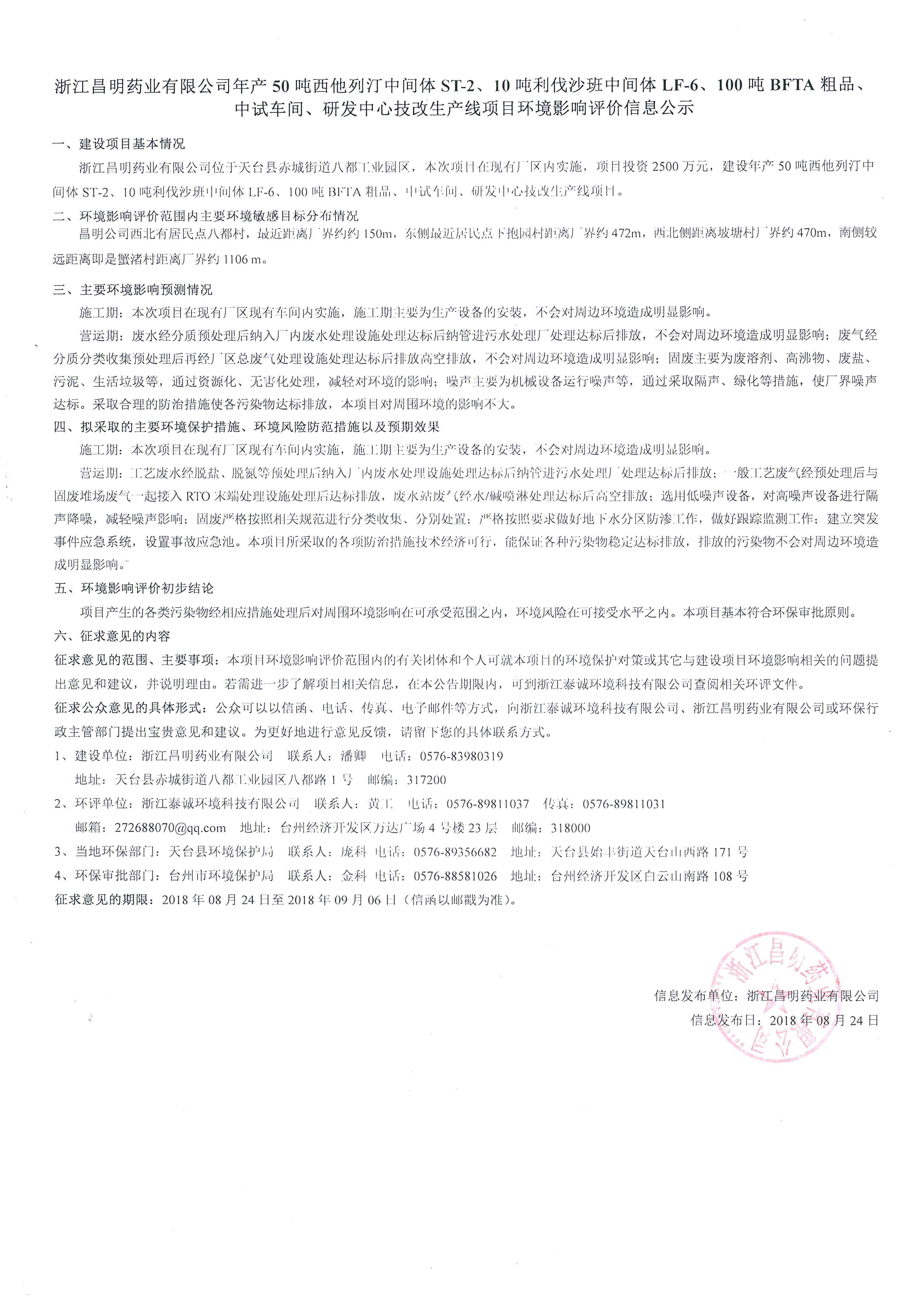 年產(chǎn)50噸西他列汀中間體ST-2、10噸利伐沙班中間體LF-6、100噸BFTA粗品、中試車間、研發(fā)中心技改生產(chǎn)線項目環(huán)評公示